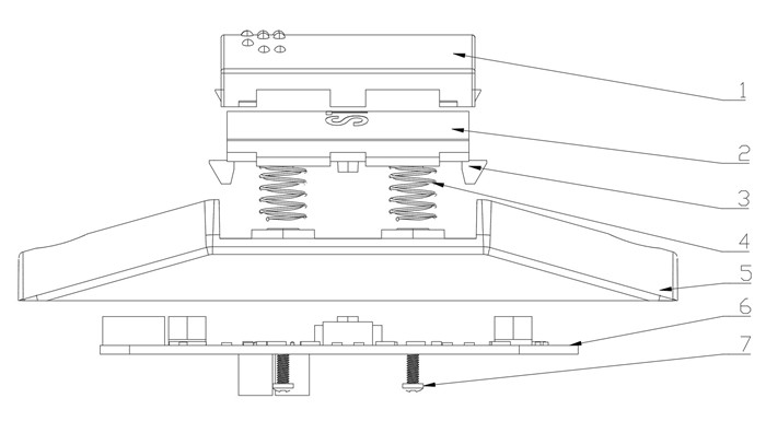 2.按鍵力及行程:按鍵力12±4N,行程>2mm,壽命20萬次,自復位式按鍵;